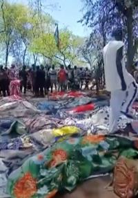 A video of dozens of bodies lying on open ground was shared online, and a local journalist said many other victims are believed to have fled to the bushes.