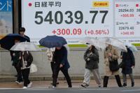 Perople walk in front of an electronic stock board showing Japan's Nikkei index at a securities firm Thursday, April 2, 2026, in Tokyo. (AP Photo/Eugene Hoshiko)