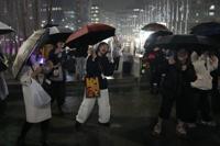 Fans of K-pop band BTS gather outside of the stadium where K-pop band BTS is performing the World Tour Arirang in Goyang, South Korea, Thursday, April 9, 2026. (AP Photo/Lee Jin-man)