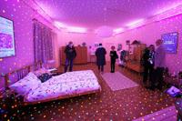 People walk through the artwork 'Infinity Mirrored Room' during a preview of the new major exhibition of legendary Japanese artist Yayoi Kusama at the Museum Ludwig in Cologne, Thursday, March 12, 2026. (AP Photo/Martin Meissner)