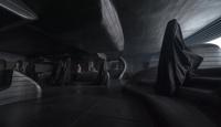 A world with intense desert heat meant Arrakis interiors needed thick walls that retain humidity and coolness. Those spaces should also avoid direct sunlight, so Vermette's set features a system of light wells to illuminate the indoors.聽