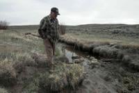 But without snow on the land, his cows are grazing his grass before it can grow high, and several of his ponds are dry. The ditch that would usually move water from the nearby Illinois River to his property is also dry — tapped already by neighbors with more senior water rights than his.