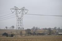 A 500-kilovolt electric transmission line crosses farmland in Mechanicsburg, Pa., on March 5, 2026. (AP Photo/Marc Levy)