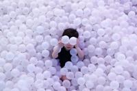 A child plays in a ball pit during an immersive exhibit at the Megapolis Outlets Center in Panama City, Tuesday, April 7, 2026. (AP Photo/Matias Delacroix)