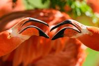 Two flamingos are shown at the zoo in Cologne, Germany, on a warm and sunny Thursday, April 9, 2026. (AP Photo/Martin Meissner)
