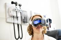 Research administrator Victoria Wicks uses a VR headset to demonstrate an innovative virtual reality music concert project, played by pianist Alexandra Streliski on a computer, not shown, at St. Mary's Hospital in Montreal on Wednesday, April 8, 2026. THE CANADIAN PRESS/Christopher Katsarov