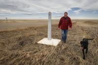 A silver marker on a hill overlooking Ford's farm indicates the exact location of the border. Recognizing the Treaty of 1908, it reads Canada on the north side of the marker and the United States on the south.
