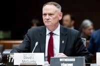 Maxime Langlois, director of the Bolo Program, displays an advent calendar containing the Top 25 of Canada's Most Wanted fugitives during a press conference in Montreal, Wednesday, Dec. 4, 2024. THE CANADIAN PRESS/Christinne Muschi