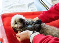 An orphaned sea otter pup has been rescued in British Columbia and is receiving 24-hour care to "ensure her survival." A seal pup is handled by a staff member in Vancouver in a recent handout photo. THE CANADIAN PRESS/HO-Vancouver Aquarium Marine Mammal Rescue Society, *MANDATORY CREDIT*