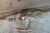 This image released by the Italian Culture Ministry on Monday, April 27, 2026, shows a victim of the AD 79 eruption of Mount Vesuvius, in the Pompeii archaeological area near Naples in southern Italy. (Italian Culture Ministry via AP, HO)