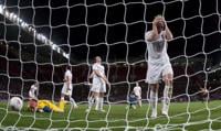 Canadian players including their goalkeeper Erin McLeod, bottom left, and Carmelina Moscato, centre right, react after the winning goal by United States' Alex Morgan, bottom centre right, during their semifinal women's soccer match at the 2012 London Summer Olympics, Monday, Aug. 6, 2012 at Old Trafford Stadium in Manchester, England. (AP Photo/Jon Super)