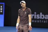 Andy Murray of Great Britain reacts after missing a shot in his match against Grigor Dimitrov of Bulgaria during the Brisbane International tennis tournament in Brisbane, Australia, Monday, Jan. 1, 2024. (AP Photo/Tertius Pickard)