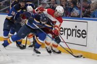 Blues: The team responded to coach Jim Montgomery’s criticism after Saturday’s loss to Columbus by taking the early lead and bouncing back after the Flames tied it in the third.
