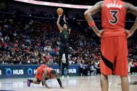 Shead was playing tight, physical defence against Murray with a little over 90 seconds left in the game. Murray got a step on Shead and launched his three-point attempt as the Raptors guard fell to the court trying to catch up.