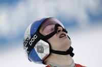 Raphael Haaser had a nasty crash when the Austrian straddled a gate, went airborne and landed on his upper back. He was attended to by medics and got up with a bloodied face before sliding down to the finish area on one ski.