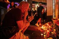 Denis Ramsey cries during a vigil for the victims of an overnight crash of a vehicle involved in a high speed chase, which caused several deaths and multiple injuries at Bradley's on 7th, a popular LGBTQ+ nightclub, Saturday, Nov. 8, 2025, in Tampa, Fla. (Martha Asencio-Rhine/Tampa Bay Times via AP)