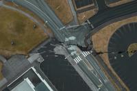 This image taken with a drone shows cracks at an intersection in the town of Grindavik, Iceland, Thursday, Nov. 16, 2023. Residents of a fishing town in southwestern Iceland have left their homes after increasing concern about a potential volcanic eruption caused civil defense authorities to declare a state of emergency in the region. Iceland's Meteorological Office says police decided to evacuate Grindavik after recent seismic activity in the area moved south toward the town. (AP Photo/Bjorn Steinbekk)
