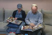 Hazel and David Brief look at photo books made by their son Yona Brief who died 14 months after Hamas militants shot him 14 times on Oct. 7, 2024 in Kfar Aza, at their home in Modiin, Israel, Dec. 8, 2024. (AP Photo/Sam McNeil)
