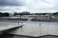 Social movement activists gather at Praça dos Tres Poderes for a pro-democracy event on the second anniversary of the alleged coup attempt when supporters of former President Jair Bolsonaro invaded government buildings and called for military intervention in Brasilia, Brazil, Wednesday, Jan. 8, 2025. (AP Photo/Eraldo Peres)