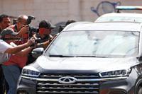 Photojournalists cover the arrival of the vehicle carrying Brazil's former President Jair Bolsonaro at Federal Police headquarters where he will testify in Brasilia, Brazil, Thursday, Aug. 31, 2023. Bolsonaro and seven others were summoned to answer questions about the sale of luxury goods reportedly worth millions, that the former leader received as gifts from Saudi Arabia while in office, according to a Brasilia federal police officer who spoke on condition of anonymity to discuss the ongoing investigation. (AP Photo/Eraldo Peres)