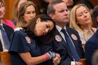 Jennifer and Doug Getten, who lost their 9-year-old daughter Ellen Getten in the July 4th flood, attend a hearing on a suit against Camp Mystic in the 459th State District Court in Austin, Monday, April 13, 2026. (Mikala Compton/Austin American-Statesman via AP)