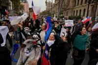 A protestor takes part in a march during World Water Day to demand greater environmental protection and animal welfare, in Santiago, Chile, Sunday, March 22, 2026. (AP Photo/Esteban Felix)