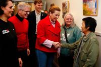 Denmark's Prime Minister and The Social Democrats' leader Mette Frederiksen meets Greenlandic voters on election day in Aalborg, Denmark, Tuesday March 24, 2026. (Henning Bagger/Ritzau Scanpix via AP)