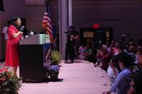 in February and cast the race as a test of Trump’s leadership. She criticized his pardons of people convicted of Jan. 6-related crimes and faulted him for freezing funds authorized by Congress.