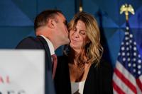 Virginia Republican incumbent Attorney General Jason Miyares kisses his wife during an election night watch party after losing the Virginia attorney general's race Tuesday Nov. 4, 2025, in Virginia Beach Va. (AP Photo/Steve Helber)