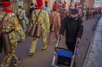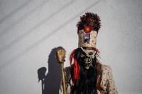 Donning large, heavy copper cowbells around their waists, which clang incessantly, the men walk, dance and jump through the town’s winding streets and visit the cemetery.