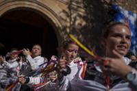 Women dance during the 'Endiablada' traditional festival in Almonacid del Marquesado, Spain, Sunday, Feb. 2, 2025. (AP Photo/Manu Fernandez)