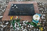 Tributes lay on a memorial Friday, Sept. 26, 2025, for four teenage girls who were killed in a yogurt shop in 1991 in Austin, Texas. (AP Photo/Paul J. Weber)