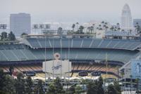 Dodger Stadium is shown before an evening baseball game on Friday, June 20, 2025, in Los Angeles. (AP Photo/Damian Dovarganes)