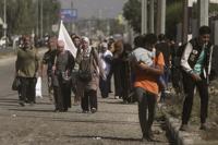 Some arrived on donkey carts, most on foot, some pushing elderly relatives in wheelchairs, all visibly exhausted. Many had nothing but the clothes on their backs.