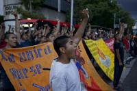 Classmates of the 43 Ayotzinapa students who went missing almost 10 years ago march to demand justice for their loved ones in Mexico City, Monday, Aug. 26, 2024. (AP Photo/Felix Marquez)