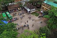 People stand in queue to cast their votes at a polling center during the state election in Guwahati, India, Thursday, April 9, 2026. (AP Photo/Anupam Nath)