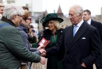 The king, dressed in a dark overcoat and shiny blue tie, smiled as he made his way along a rope line outside St. George's Chapel for about five minutes, reaching into the crowd to greet supporters who waved get-well cards and snapped photos on a chilly early spring day. “You’re very brave to stand out here in the cold,†Charles told them.