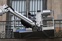 The sight mirrored what happened Oct. 19, when a team of thieves posing as workers used a similar lift, then sliced through the window to enter the gallery. They grabbed and other treasures, and eight minutes later they were gone.
