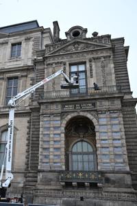 Samuel Lasnel of maintenance lift company Grima-Nacelles said he and his crew arrived before dawn Tuesday to carry out the high-profile window-securing operation.