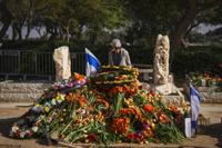 Horn lit a candle and laid a red flower next to a memorial for the Bibas family, along with almost 40 ambassadors to Israel.
