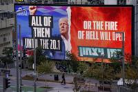 TEL AVIV, Israel — An Israeli group representing some families of hostages held in Gaza displayed an image of U.S. President-elect Donald Trump on a huge electronic billboard in Tel Aviv with a reference to his threat if the captives aren't freed before he takes office later this month.