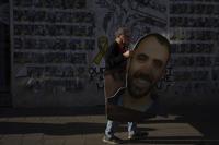 The billboard shows a photo of moments after his assassination attempt, and threatens in English “the fire of hell will open†if the hostages aren't released.