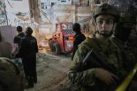 Associated Press footage showed the building completely collapsed, with dried blood splatted on the grey rubble. Nearby, a child’s school notebook, dust-covered dolls and clothing lay half-buried in the ruins.