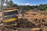 Wreckages of vehicles litter a village affected by a flash flood in Agam, West Sumatra, Indonesia, Monday, Dec. 1, 2025. (AP Photo/Ade Yuandha)