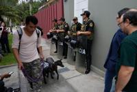 Police stand guard during a raid on the home of former National Office of Electoral Processes chief Piero Corvetto, who resigned after the April 12 general election, in Lima, Peru, Friday, April 24, 2026. (AP Photo/Martin Mejia)