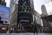 A general view shows the Nasdaq MarketSite, Thursday, April 10, 2025, in New York. (AP Photo/Yuki Iwamura)