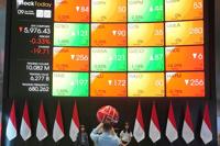 A man takes a picture with his mobile phone near electronic board displaying stock prices at the Indonesia Stock Exchange, in Jakarta, Indonesia, Wednesday, April 9, 2025. (AP Photo/Achmad Ibrahim)