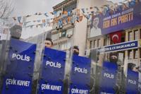 Security have cordons off the area around City Hall following the arrest of Istanbul Mayor Ekrem Imamoglu in Istanbul, Turkey, Wednesday, March 19, 2025. (AP Photo/Francisco Seco)
