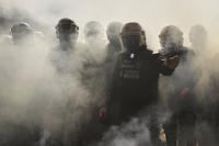 Riot police fire tear gas pellets to disperse protesters during a protest against the arrest of Istanbul's Mayor Ekrem Imamoglu, in Istanbul, Turkey, Saturday, March 22, 2025. (AP Photo/Francisco Seco)