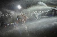 Anti riot police officers use pepper spray during clashes with people in Istanbul, Turkey, Thursday, March 20, 2025, as they protest against the arrest of Istanbul's Mayor Ekrem Imamoglu. (AP Photo/Emrah Gurel)